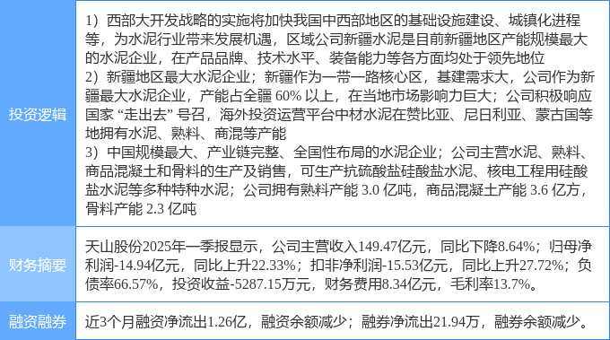 7月21日天山股份漲停:水泥,西部大開發(fā),一帶一路概念熱股