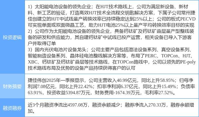 8月1日捷佳偉創(chuàng)漲停:鈣鈦礦電池,異質結電池HJT,光伏概念熱股