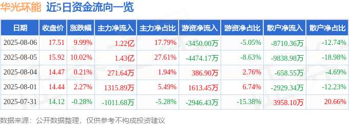 消息,華光環(huán)能8月6日漲停收盤,收盤價(jià)17.51元。該股于10點(diǎn)13分漲停,3次打開漲停,截止收盤封單資金為3537.09萬元,占其流通市值0.21%。