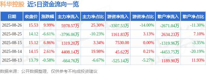 消息,科華控股8月26日漲停收盤,收盤價15.53元。該股于9點35分漲停,4次打開漲停,截止收盤封單資金為2341.33萬元,占其流通市值0.79%。