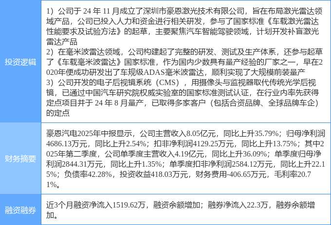 8月28日豪恩汽電漲停:激光雷達,毫米波雷達,電子后視鏡概念熱股