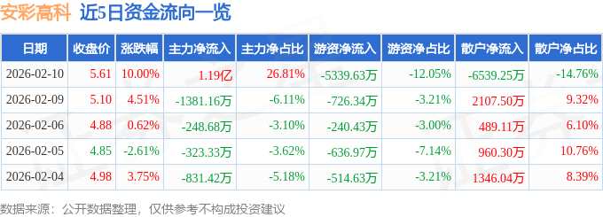 2月10日的資金流向數(shù)據(jù)方面,主力資金凈流入1.19億元,占總成交額26.81%,游資資金凈流出5339.63萬元,占總成交額12.05%,散戶資金凈流出6539.25萬元,占總成交額14.76%。