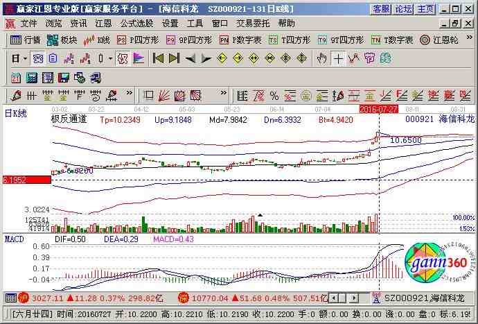 000921股票分析綜合評(píng)論:海信科龍000921當(dāng)前趨勢(shì)運(yùn)行在生命線以上強(qiáng)勢(shì)可操作區(qū)域,中期資金籌碼占流通盤87.34%,主力控盤度較高大方向依然樂觀。通過江恩價(jià)格工具分析,該股短期支撐是9.68元,阻力是10.56元;通過江恩時(shí)間工具分析,該股短期時(shí)間窗為 2016-08-07號(hào)和2016-08-28號(hào),中期時(shí)間窗2016-09-18號(hào)和2016-10-22號(hào) ,結(jié)合持倉成本做好計(jì)劃。