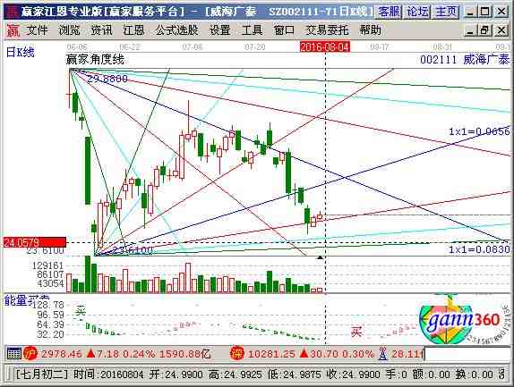 002111股票分析綜合評(píng)論:威海廣泰002111當(dāng)前趨勢(shì)運(yùn)行在生命線以下弱勢(shì)休息區(qū)域,中期資金籌碼占流通盤59.72%,主力控盤度較高大方向依然樂觀。通過江恩價(jià)格工具分析,該股短期支撐是24.41元,阻力是27.46元;通過江恩時(shí)間工具分析,該股短期時(shí)間窗為 2016-06-19號(hào)和2016-07-10號(hào),中期時(shí)間窗2016-07-31號(hào)和2016-09-03號(hào) ,結(jié)合持倉成本做好計(jì)劃。