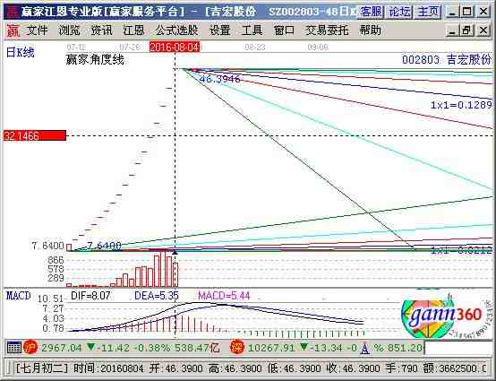 002803股票分析綜合評論:吉宏股份002803當前趨勢運行在生命線以上強勢可操作區(qū)域,通過江恩價格工具分析,該股短期支撐是36.68元,阻力是42.17元;通過江恩時間工具分析,該股短期時間窗為 2016-08-16號和2016-09-06號,中期時間窗2016-09-27號和2016-10-31號 ,結合持倉成本做好計劃。