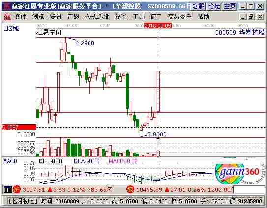 000509股票分析綜合評論:華塑控股000509當(dāng)前趨勢運(yùn)行在生命線以下弱勢休息區(qū)域,中期資金籌碼占流通盤13.23%,主力控盤度較低未來上漲的潛力有待觀察。通過江恩價格工具分析,該股短期支撐是5.06元,阻力是5.69元;通過江恩時間工具分析,該股短期時間窗為 2016-07-14號和2016-08-04號,中期時間窗2016-08-25號和2016-09-28號 ,結(jié)合持倉成本做好計劃。