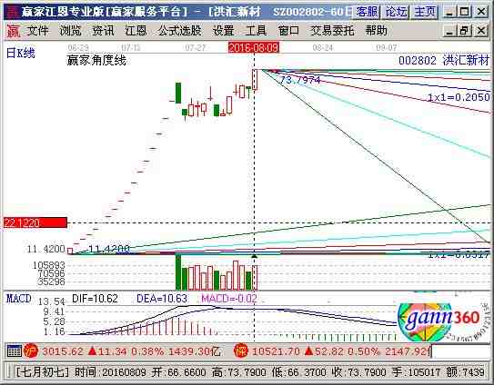 002802股票分析綜合評論:洪匯新材002802當(dāng)前趨勢運(yùn)行在生命線以上強(qiáng)勢可操作區(qū)域,通過江恩價(jià)格工具分析,該股短期支撐是54.84元,阻力是67元;通過江恩時(shí)間工具分析,該股短期時(shí)間窗為 2016-08-18號和2016-09-08號,中期時(shí)間窗2016-09-29號和2016-11-02號 ,結(jié)合持倉成本做好計(jì)劃。
