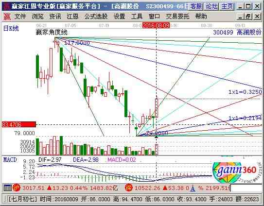 300499股票分析綜合評(píng)論:高瀾股份300499當(dāng)前趨勢(shì)運(yùn)行在生命線以下弱勢(shì)休息區(qū)域,通過(guò)江恩價(jià)格工具分析,該股短期支撐是81.8元,阻力是92.03元;通過(guò)江恩時(shí)間工具分析,該股短期時(shí)間窗為 2016-07-11號(hào)和2016-08-01號(hào),中期時(shí)間窗2016-08-22號(hào)和2016-09-25號(hào) ,結(jié)合持倉(cāng)成本做好計(jì)劃。