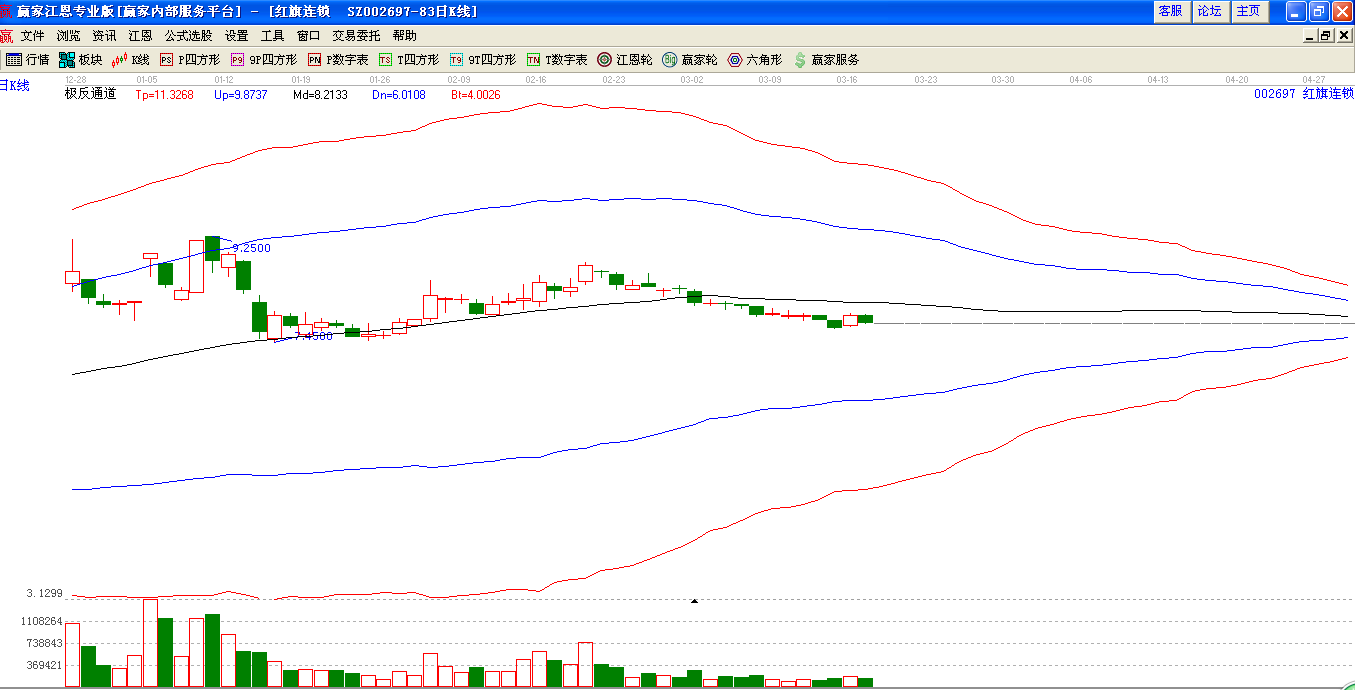 根據(jù)贏家江恩星級評定模型:002697股票分析綜合評論:紅旗連鎖002697當(dāng)前趨勢運(yùn)行在生命線以下弱勢休息區(qū)域,中期資金籌碼占流通盤37.45%,主力控盤度較高大方向依然樂觀。通過江恩價(jià)格工具分析,該股短期支撐是7.54元,阻力是8.48元;通過江恩時間工具分析,該股短期時間窗為 2017-01-23號和2017-02-13號,中期時間窗2017-03-06號和2017-04-09號 ,結(jié)合持倉成本做好計(jì)劃。
