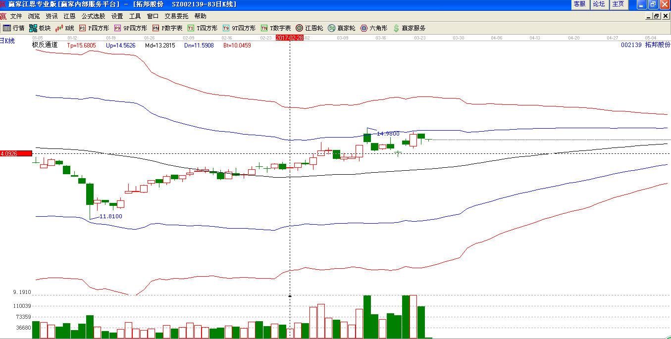 根據(jù)贏家江恩星級(jí)評(píng)定模型:002139股票分析綜合評(píng)論:拓邦股份002139當(dāng)前趨勢(shì)運(yùn)行在生命線以上強(qiáng)勢(shì)可操作區(qū)域,中期資金籌碼占流通盤(pán)20.37%,主力控盤(pán)度較低未來(lái)上漲的潛力有待觀察。通過(guò)江恩價(jià)格工具分析,該股短期支撐是13.82元,阻力是15.35元;通過(guò)江恩時(shí)間工具分析,該股短期時(shí)間窗為 2017-04-04號(hào)和2017-04-25號(hào),中期時(shí)間窗2017-05-16號(hào)和2017-06-19號(hào) ,結(jié)合持倉(cāng)成本做好計(jì)劃。