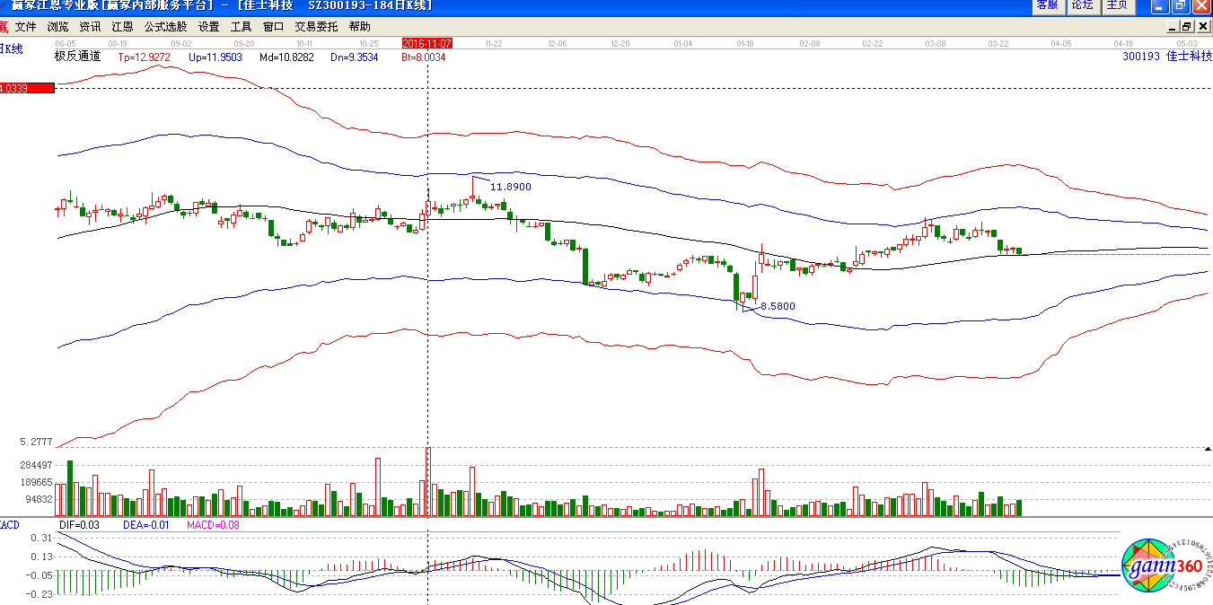 根據(jù)贏家江恩星級評定模型:300193股票分析綜合評論:佳士科技300193當(dāng)前趨勢運(yùn)行在生命線以上強(qiáng)勢可操作區(qū)域,中期資金籌碼占流通盤25.74%,主力控盤度較低未來上漲的潛力有待觀察。通過江恩價(jià)格工具分析,該股短期支撐是9.95元,阻力是11.05元;通過江恩時(shí)間工具分析,該股短期時(shí)間窗為 2017-03-20號和2017-04-10號,中期時(shí)間窗2017-05-01號和2017-06-04號 ,結(jié)合持倉成本做好計(jì)劃。