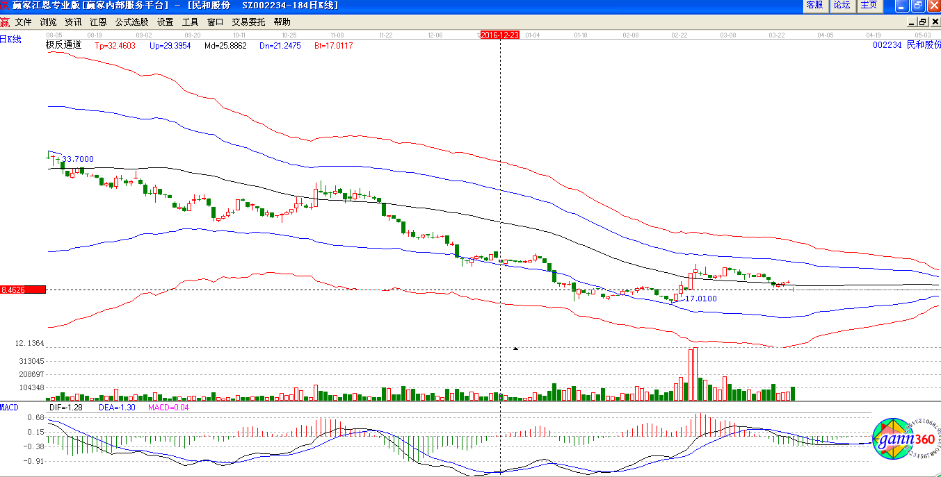 根據(jù)贏家江恩星級(jí)評定模型:002234股票分析綜合評論:民和股份002234當(dāng)前趨勢運(yùn)行在生命線以下弱勢休息區(qū)域,中期資金籌碼占流通盤38.03%,主力控盤度較高大方向依然樂觀。通過江恩價(jià)格工具分析,該股短期支撐是17.24元,阻力是19.4元;通過江恩時(shí)間工具分析,該股短期時(shí)間窗為 2017-01-17號(hào)和2017-02-07號(hào),中期時(shí)間窗2017-02-28號(hào)和2017-04-03號(hào) ,結(jié)合持倉成本做好計(jì)劃。