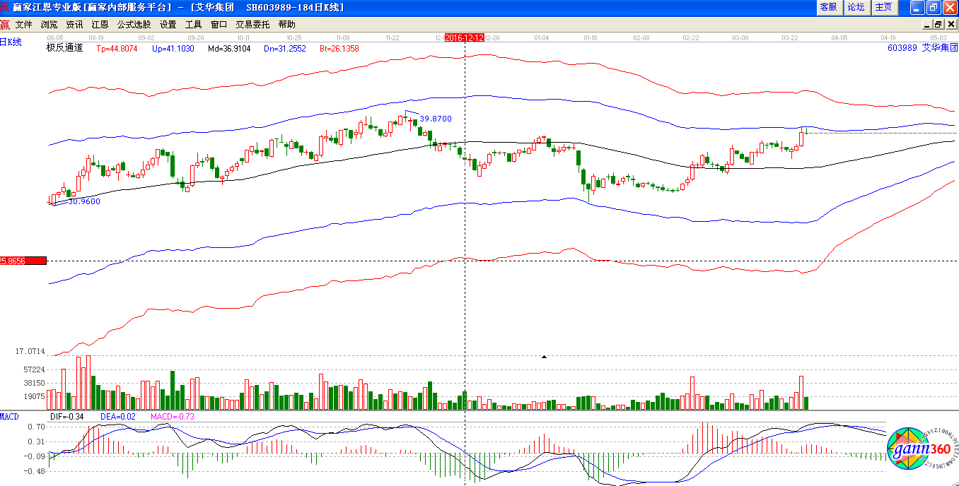 根據(jù)贏家江恩星級評定模型:603989股票分析綜合評論:艾華集團(tuán)603989當(dāng)前趨勢運(yùn)行在生命線以上強(qiáng)勢可操作區(qū)域,中期資金籌碼占流通盤12.78%,主力控盤度較低未來上漲的潛力有待觀察。通過江恩價格工具分析,該股短期支撐是36.39元,阻力是40.44元;通過江恩時間工具分析,該股短期時間窗為 2017-04-06號和2017-04-27號,中期時間窗2017-05-18號和2017-06-21號 ,結(jié)合持倉成本做好計劃。