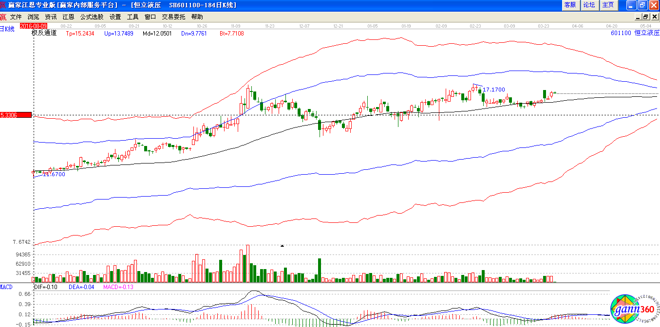 根據(jù)贏家江恩星級(jí)評(píng)定模型:601100股票分析綜合評(píng)論:恒立液壓601100當(dāng)前趨勢(shì)運(yùn)行在生命線以上強(qiáng)勢(shì)可操作區(qū)域,中期資金籌碼占流通盤54.91%,主力控盤度較高大方向依然樂觀。通過江恩價(jià)格工具分析,該股短期支撐是15.28元,阻力是17.19元;通過江恩時(shí)間工具分析,該股短期時(shí)間窗為 2017-03-07號(hào)和2017-03-28號(hào),中期時(shí)間窗2017-04-18號(hào)和2017-05-22號(hào) ,結(jié)合持倉(cāng)成本做好計(jì)劃。