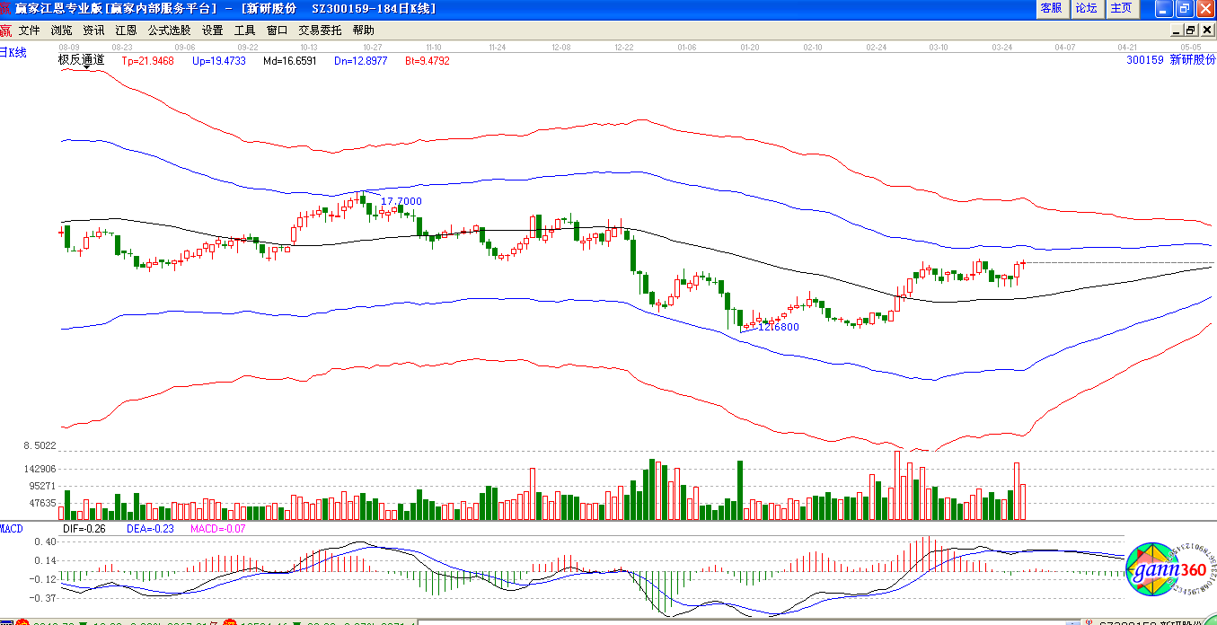 根據(jù)贏家江恩星級(jí)評(píng)定模型:300159股票分析綜合評(píng)論:新研股份300159當(dāng)前趨勢(shì)運(yùn)行在生命線以上強(qiáng)勢(shì)可操作區(qū)域,中期資金籌碼占流通盤28.28%,主力控盤度較低未來(lái)上漲的潛力有待觀察。通過(guò)江恩價(jià)格工具分析,該股短期支撐是14.48元,阻力是16.09元;通過(guò)江恩時(shí)間工具分析,該股短期時(shí)間窗為 2017-04-02號(hào)和2017-04-23號(hào),中期時(shí)間窗2017-05-14號(hào)和2017-06-17號(hào) ,結(jié)合持倉(cāng)成本做好計(jì)劃。