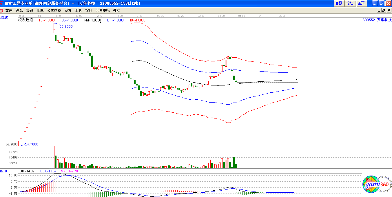 根據(jù)贏家江恩星級評定模型:300552股票分析綜合評論:萬集科技300552當前趨勢運行在生命線以上強勢可操作區(qū)域,通過江恩價格工具分析,該股短期支撐是49.93元,阻力是55.48元;通過江恩時間工具分析,該股短期時間窗為 2017-04-05號和2017-04-26號,中期時間窗2017-05-17號和2017-06-20號 ,結(jié)合持倉成本做好計劃。