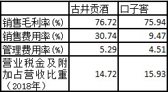 在二者毛利率不相上下的情況下,口子窖為何能保持較高的凈利率?答案是銷售費用率。