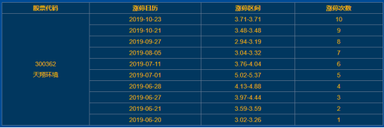 近一年來(lái)天翔環(huán)境漲停24次,下圖是其過(guò)往歷史漲停情況: