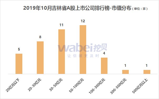 2019年10月吉林省A股上市公司市值排行榜 一汽轎車市值134.59 億