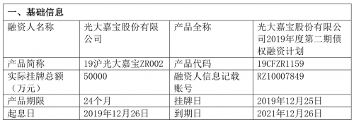 12月26日,光大嘉寶發(fā)布《關(guān)于2019年度第二期債權(quán)融資計(jì)劃發(fā)行結(jié)果公告》。