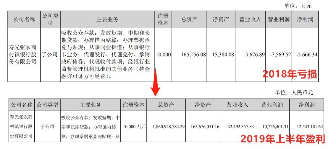 查閱張家港行財(cái)務(wù)報(bào)告發(fā)現(xiàn),壽光張農(nóng)商村鎮(zhèn)銀行已于2019年上半年扭虧為盈。截至2018年末,該行資產(chǎn)規(guī)模165156.08萬元,營業(yè)收入5676.89萬元,虧損卻高達(dá)5666.34萬元。