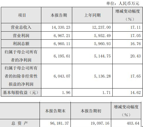 據(jù)了解,報(bào)告期內(nèi),公司實(shí)現(xiàn)營(yíng)業(yè)收入14,330.23萬元,較上年同期增長(zhǎng)17.11%;實(shí)現(xiàn)歸屬于母公司所有者的凈利潤(rùn)6,195.61萬元,較上年同期增長(zhǎng)20.43%;實(shí)現(xiàn)歸屬于母公司所有者的扣除非經(jīng)常性損益的凈利潤(rùn)6,043.07萬元,較上年同期增長(zhǎng)17.65%;報(bào)告期末總資產(chǎn)96,181.37萬元,較期初增長(zhǎng)403.64%;歸屬于母公司的所有者權(quán)益94,003.80萬元,較期初增長(zhǎng)459.37%。