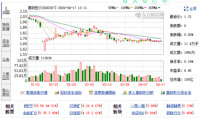 摘要: 酒鋼宏興(600307)2020-04-16融資融券信息顯示,酒鋼宏興融資余額363,059,949元,融券余額1,930,356元。