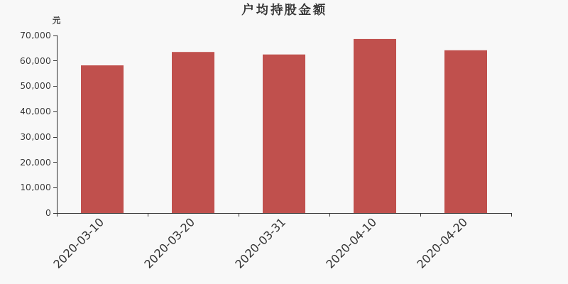截至2020年4月20日,公司最新總股本為9.89億股,其中流通股本為9.72億股。戶均持有流通股數(shù)量由上期的1.36萬股下降至1.35萬股,戶均流通市值6.42萬元。