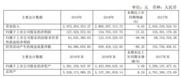 報(bào)告期,全年實(shí)現(xiàn)營(yíng)業(yè)收入26.70億元,比上年同期減少1.90億元,同比下降6.65%;實(shí)現(xiàn)利潤(rùn)總額1.59億元,比上年同期減少0.37億元,同比下降18.99%;歸屬母公司股東的凈利潤(rùn)1.28億元,比上年同期減少0.27億元,同比下降17.61%。