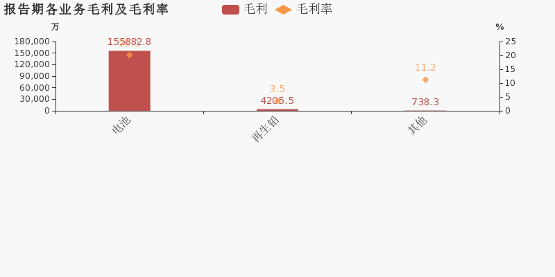 從業(yè)務結構來看,“電池”是企業(yè)營業(yè)收入的主要來源。具體而言,“電池”營業(yè)收入為77.7億,營收占比為86.1%,毛利率為20.1%。