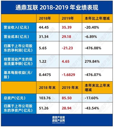 總資產(chǎn)減18% 通鼎互聯(lián)2019年虧損超20億元