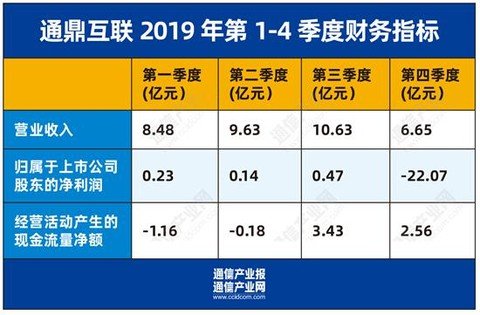 正是由于在年末增加了多項(xiàng)數(shù)額較大的資產(chǎn)減記事項(xiàng),導(dǎo)致通鼎互聯(lián)2019年總資產(chǎn)較2018年減少17.60%,并在賬面上使該公司2019年第四季度出現(xiàn)了大額虧損,虧損額為22.07億元,進(jìn)而造成通鼎互聯(lián)全年出現(xiàn)虧損。