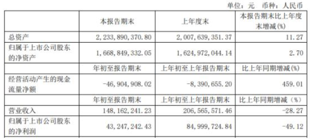 5月1日,基蛋生物(603387)今日發(fā)布2020年第一季度報(bào)告,公告顯示,報(bào)告期內(nèi)實(shí)現(xiàn)營(yíng)收148,162,241.23元,同比下滑28.27%;歸屬于上市公司股東的凈利潤(rùn)43,247,242.43元,同比下滑49.12%。