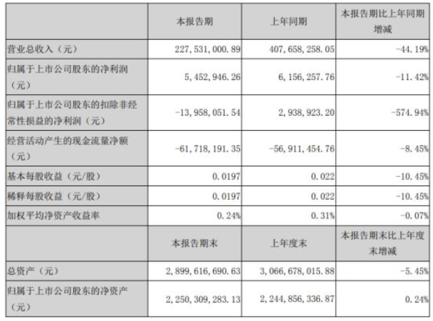 據(jù)了解,報(bào)告期內(nèi),新型冠狀病毒肺炎疫情在我國爆發(fā),隨后在全球不同國家、地區(qū)持續(xù)爆發(fā),我國乃至全球的經(jīng)濟(jì)活動(dòng)受到了巨大沖擊。因疫情防控需要,國內(nèi)復(fù)工復(fù)產(chǎn)進(jìn)程受到較大程度影響,物流和銷售都受到制約,市場低迷需求不振,導(dǎo)致公司2020年一季度經(jīng)營業(yè)績大幅下降。報(bào)告期內(nèi),公司實(shí)現(xiàn)營業(yè)收入22,753.10萬元,較上年同期大幅下降44.19%;歸屬于上市公司股東的凈利潤545.29萬元,較上年同期下降11.42%;歸屬于上市公司股東的扣除非經(jīng)常性損益的凈利潤-1,395.81萬元,較上年同期大幅下降574.94%。