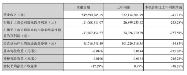 據(jù)了解,報(bào)告期內(nèi)實(shí)現(xiàn)營(yíng)收549,890,785.25元,同比下滑41.01%;報(bào)告期較上年同期合并范圍減少。