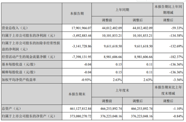5月2日,創(chuàng)業(yè)黑馬(300688)近日發(fā)布2020年第一季度報告,公告顯示,報告期內(nèi)實現(xiàn)營業(yè)收入17,901,966.07元,同比下降59.33%;歸屬于上市公司股東的凈利潤-3,492,883.44元,上年同期10,101,853.21元,由盈轉(zhuǎn)虧;本報告期末總資產(chǎn)461,127,812.84元,較上年度末下降1.1%;歸屬于上市公司股東的凈資產(chǎn)373,080,270.72元,較上年度末下降0.84%。