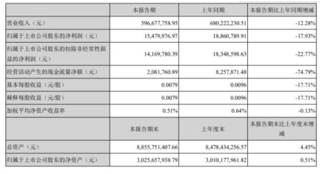 報告期末公司總資產(chǎn)為8,855,751,407.66元,較期初增長4.45%;歸屬于上市公司股東的凈資產(chǎn)為3,025,657,938.79元,較期初增長0.51%。