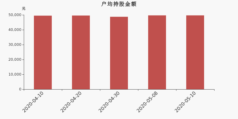 截至2020年5月10日,公司最新A股流通股本為5.42億股。戶均持有流通股數(shù)量較上期1.56萬股不變,戶均流通市值4.97萬元。