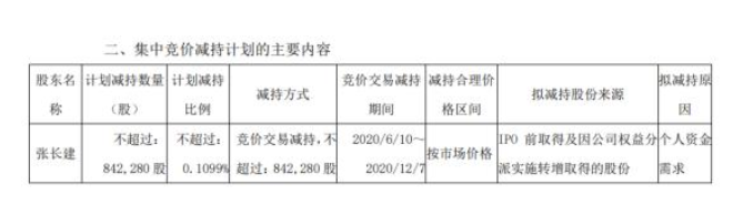 據(jù)了解,董事張長建通過嘉興市全知投資管理有限公司、嘉興嘉潤豐投資管理有限公司間接持有公司股份共計3,369,123股,占公司總股本的0.4395%。本次擬減持的原因系個人資金需求,股份來源為IPO前取得及因公司權(quán)益分派實施轉(zhuǎn)增取得的股份。