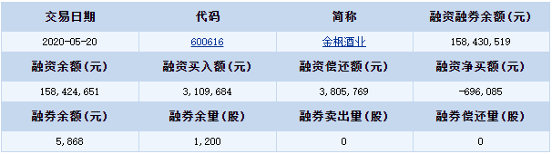 金楓酒業(yè)(600616)融資融券信息(05-20)