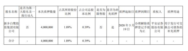截至本公告日,新鄉(xiāng)白鷺共持有公司股份數(shù)量為211,975,939股,占公司總股本比例為20.63%。累計質(zhì)押95,500,000股股份,占其所持有股份比例為45.05%,占公司總股本比例為9.30%。