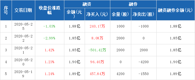 融資方面,當日融資買入700.11萬元,融資償還459.94萬元,融資凈買入240.17萬元。融券方面,融券賣出0股,融券償還1000股,融券余量1000股,融券余額9620元。融資融券余額合計1.88億元。