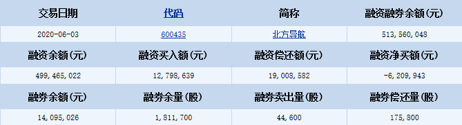 北方導(dǎo)航(600435)融資融券信息