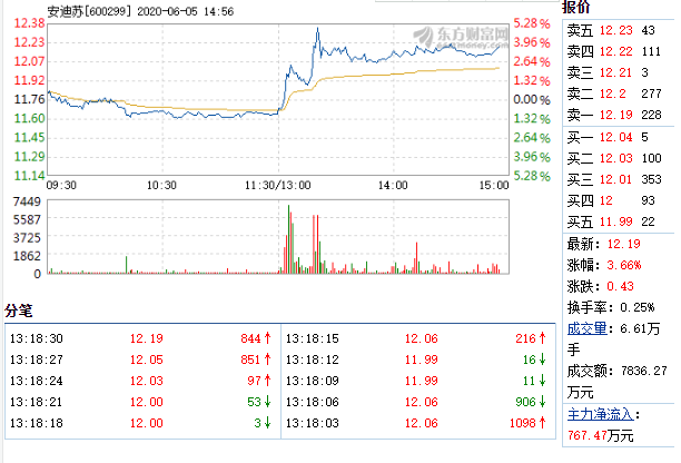 摘要: 6月5日,安迪蘇盤中快速上漲