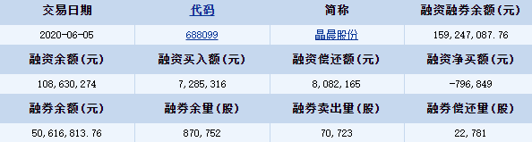 晶晨股份(688099)融資融券信息(06-05)