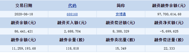 安博通(688168)融資融券信息(06-18)