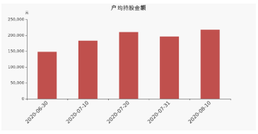 截至2020年8月10日,公司最新總股本為13.36億股,其中流通股本為12.03億股。戶均持有流通股數(shù)量由上期的2.1萬(wàn)股上升至2.13萬(wàn)股,戶均流通市值21.75萬(wàn)元。