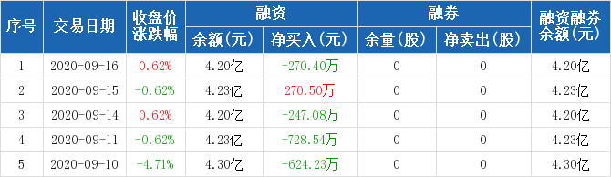 洪濤股份:融資凈償還270.4萬元,融資余額4.2億元(09-16)