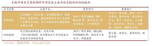 快克是國內(nèi)電子錫焊裝聯(lián)設(shè)備中高端市場的主要參與者,競爭者相對較少,公司切入到精密電子組裝智能化生產(chǎn)線領(lǐng)域,有望成為行業(yè)潛在的隱形冠軍。