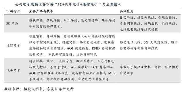 公司電子裝聯(lián)設(shè)備的應(yīng)用聚焦于3C產(chǎn)品、汽車電子、通信電子等電子信息制造領(lǐng)域。